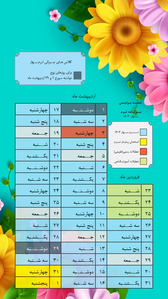 همراهان گرامی لطفاً به برنامه ی کلاس های جبرای دقت فرمایید