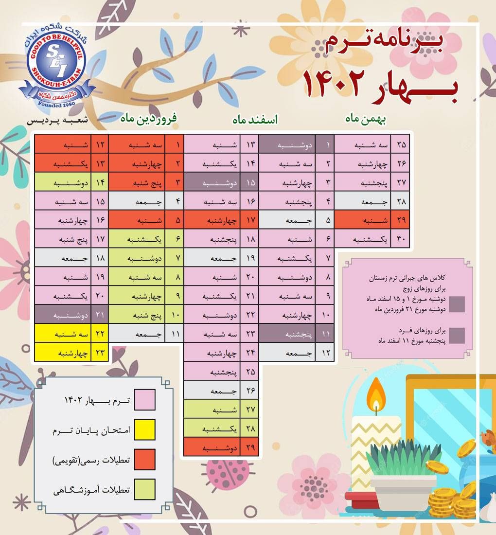 برنامه ترم دوم بهار فروردین ماه اعلام خواهد شد.